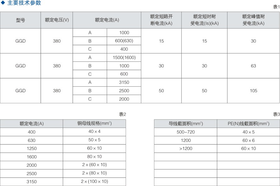GGD交流低压固定式成套开关设备适用于发电厂、变电站、厂矿企业等电力用户作为交流50Hz,额定工作电压380V,定电流至4000A及以下的配电系统中作为动力、照明及配电设备的电能转换、分配和控制之用。该产品具有分段能力高、动热稳定性好、电气方案灵活、组合方便、实用性强、结构新颖、防护等级高等特点。GGD交流低压配电柜符合IEC439《低压成套开关设备和控制设备》及GB7251.1《低压成套开关设备》等标准。