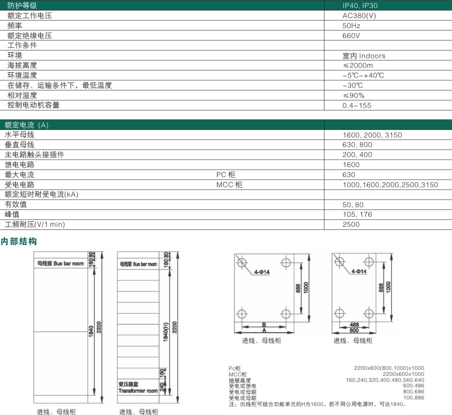 3. 在MCC方案中,柜内部分成五个区域(室):水平母线区、垂直母线区、功能单元区、电缆室、中性接地母线区。各区互相隔离,保证线路正常运行,有效防止故障扩大。
